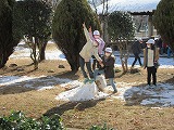 先日の雪がまだ残っていて、今日も業間休みは雪で遊ぶ姿が見られました。