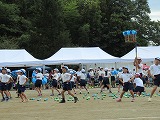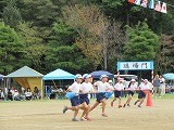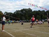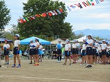 全校ダンス「重忠節」、新入児20m走、むかでリレーと進み午前の部が終了しました。