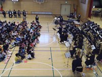 校内音楽会は、用意した椅子がほぼいっぱいになるほどの盛況ぶりでした。お忙しい中足をお運びいただいた、保護者をはじめご家族、地域の皆様に心から御礼申し上げます。今年の音楽会は、小中一貫教育の研究と絡め、児童生徒の連携の場として、川本中学校の吹奏楽部に演奏をお願いしました。早朝から駆けつけていただき、児童に分かりやすい曲を4曲演奏してくれました。子どもたちは、一緒に歌を口ずさんだり、拍手をしたりと短い時間ではありましたが、一体感を味わうことができたようです。吹奏楽部の皆さんの素晴らしい演奏が子どもたちの心に響くとともに、「いつかは私も演奏してみたいなぁ。」という憧れの気持ちを抱かせてくれたことは大きな成果です。
