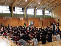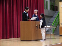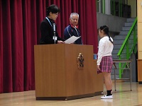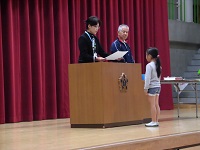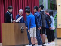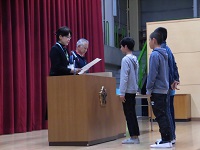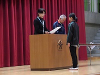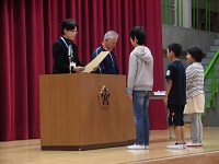今朝は表彰朝会が体育館で行われました。