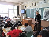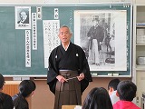 今日、6年生の道徳の授業に、ふるさと先生の梶並先生が、