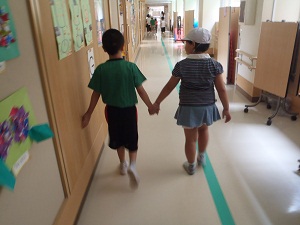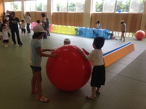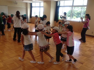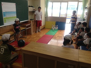 はじめに、学校内の見学を行い、子どもたちは初めて見る施設等に驚いた様子が見られ、興味津々でした。次に、体育館でのグループ顔合わせや本校の発表(リコーダー、歌)を行いました。その後、各グループごとに分かれ、少人数での交流をしました。音楽室でのリトミックや教室でのボーリング大会、ホールでの遊具遊び等、お互いに助け合いながら楽しく活動する姿が見られました。