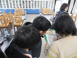 5年生が、田んぼアートで収穫したお米の袋詰めを行いました。1袋ぴったり3㎏になるように、お玉や茶わんで少しずつ入れ微調整しながら80袋も詰めました。大事なお米をこぼさないように協力して手際よく大変上手に作業していました。ナイスチームプレイ!