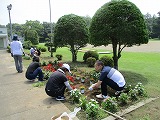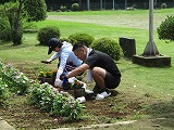 その時間を使って、今月末に予定されている「学校環境緑化コンクール」に向けた職員作業を行いました。