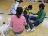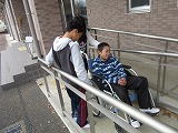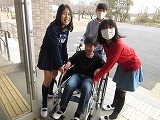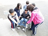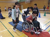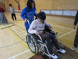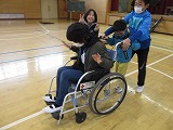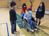 各班に分かれ、高齢者疑似体験や車いす体験を行い、