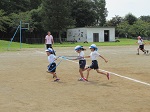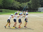 ムカデリレーは、1,2年はフラフープ 3.4年は片足ムカデ