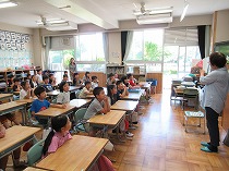 今日は、3年生から6年生にお話をボランティアさんがしてくださいました。