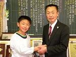 だんだん緊張感もほぐれ、最後には校長先生とがっちり握手。