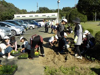 5、6年生の環境福祉委員を中心に、敷地内に花を植えて、南小学校をさらにきれいな学校にしようとする活動です。子どもたちもサポートを受けながら楽しそうに活動していました。