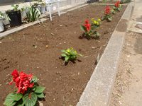 そして、本日は職員室南側の花壇、別名校長花壇に新しい花を植えました。