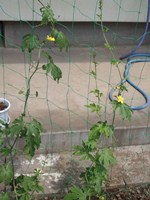 職員室前の緑のカーテン用の『ゴーヤ』は、可愛らしい黄色の花が咲き出しました。昨年のように、たくさん収穫できるといいのですが・・・これからの成長が楽しみです。