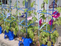 また、1年生が生活科の勉強で育てている朝顔も、少し前から花盛りで紫やピンク、水色と大きく立派な花を咲かせています。子どもたちが、心をこめて水やり等をして育てているお蔭です。