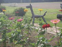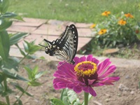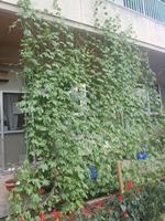 夏休みに入って10日間の間に、学校もいろいろ変化しました。南校舎は、すっぽりとシートに包まれ工事が本格化しています。ガーガーとドリルでコンクリートを削るものすごい騒音にまだ慣れていない私は、頭痛がしてきそうです。職員室前等の緑のカーテンのゴーヤや朝鮮朝顔は、すくすくと伸びて2階に届く勢いです。プールの通路際の花壇には、1年生が移植した百日草が満開になり、あでやかな色を競っています。