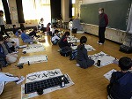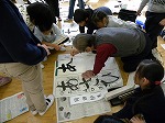 いつもの半紙とちがい、大きな紙に驚いたり、