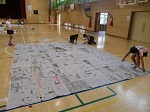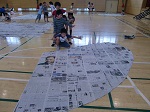 グループごとに協力して、新聞紙をのりで貼りあわせて・・・