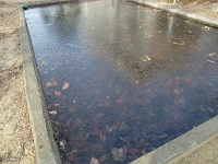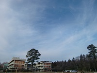 池の水が氷るような寒い朝ですが、きれいな青空が広がっています。