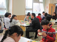おいしいごちそうが山盛りのバイキング給食と楽しい会話で