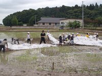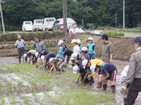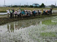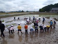 5年生は総合的な学習の時間で、田んぼアートに取り組みます。今年のデザインはあの深谷市の人気マスコット「ふっかちゃん」。新聞紙で縦15m、横15mほどの型をつくり、本日、田植えをしてきました。子どもたちは、応援団の方々に教わりながら、稲を一生懸命植えていました。完成が楽しみです。応援団の皆様、ありがとうごさいました。