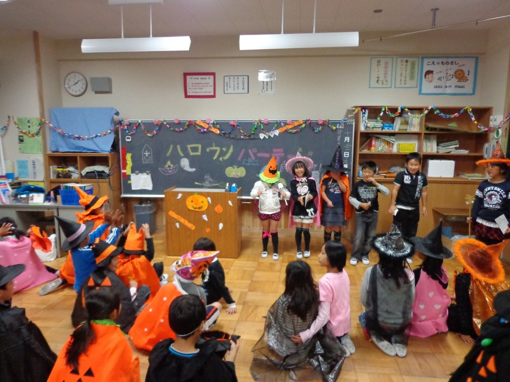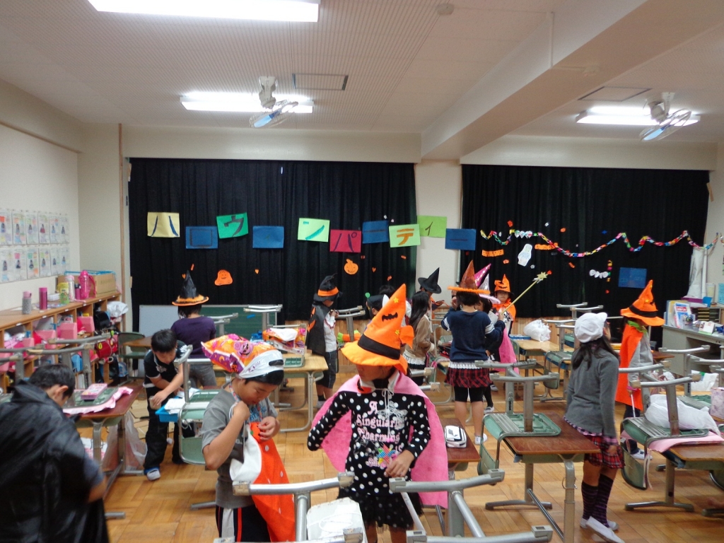 今日は学級活動の時間を使ってハロウィンパーティーを行いました。初めてのハロウィンパーティーだったので、クラスで計画し、意見を出し合い、準備なども子どもたち中心で進めました。準備する過程で一生懸命に取り組む子どもたちの姿を見て、成長しているなぁと感じることができました。とても充実した楽しいパーティーになりました。