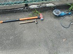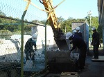 硬いブロックを壊して撤去しています。