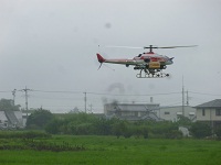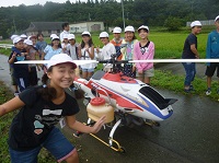 休みなしで全員が元気に登校し、ラジコンヘリによる空中散布を見学してきました。