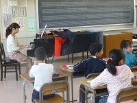 3年生の音楽の時間は小林先生にお世話になります。今日は第1回目ということで、小林先生が3年生のみんなに自己紹介の意味も込めて「きらきらぼし変曲」をピアノ演奏してくださいました。子供たちは「すごーい!」と先生の上手な演奏に聞き入っていました。