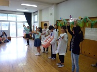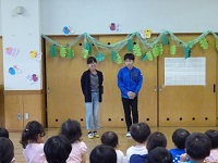 今日の業間休み、保健委員会の子ども達が南保育園を訪問しました。