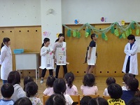 楽しい劇をして、上手な歯の磨き方を教えました。
